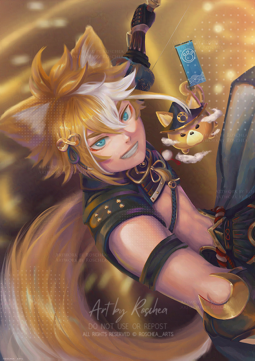 Genshin Impact - Gorou (PSD file, High Res JPG and PNG, Coloring Page)